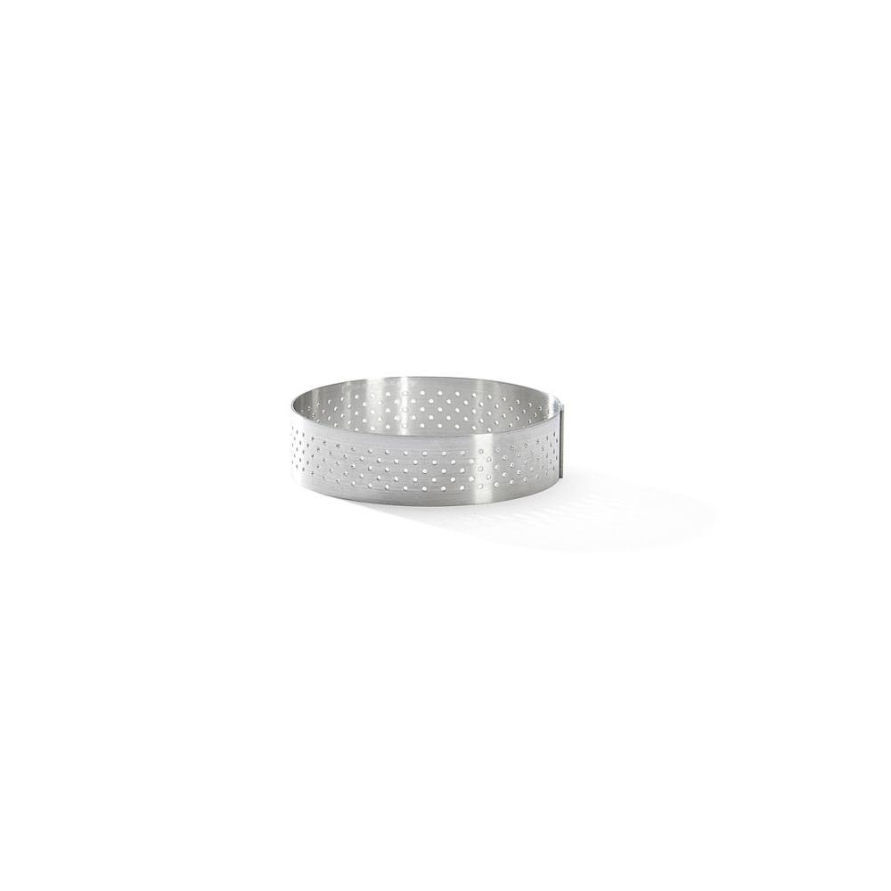 Anel para torta redondo perfurado em aço inoxidável ideal para tortas, tortinhas, bolos e quiches.