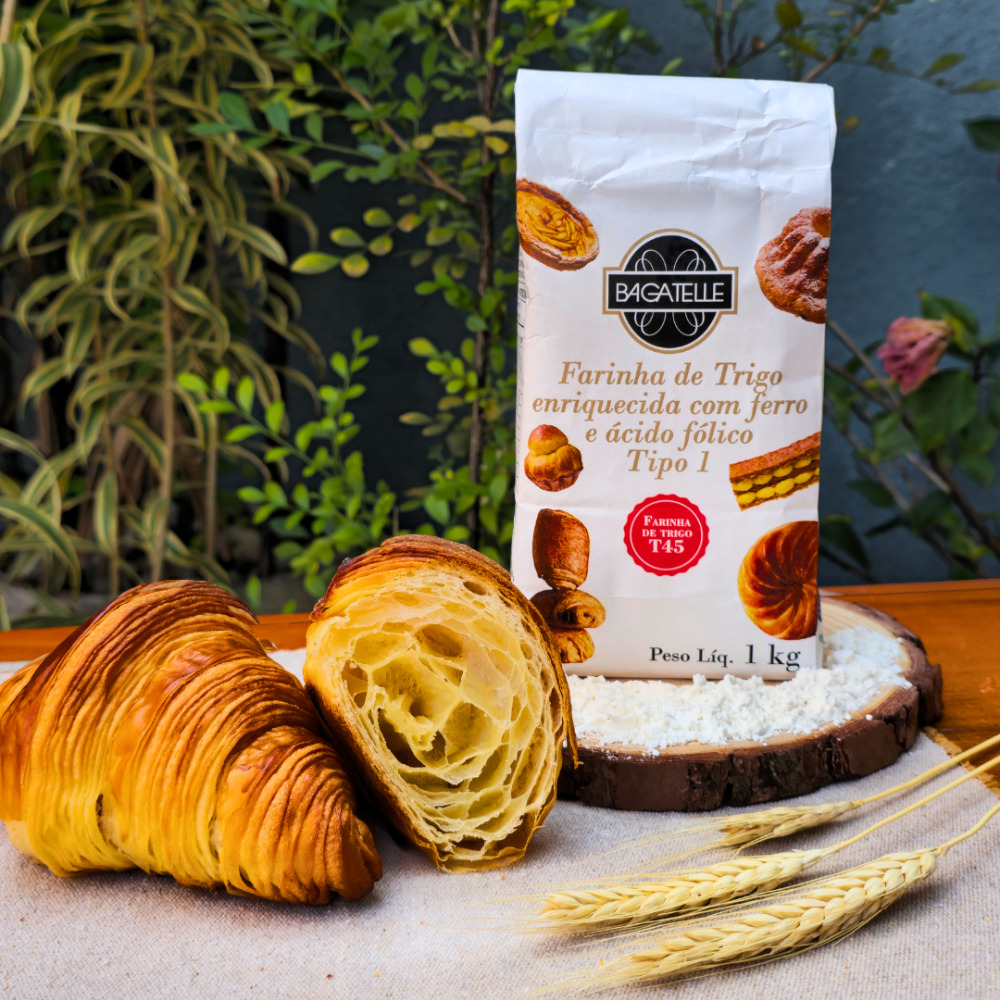 Produzida especialmente para “Viennoiserie”, a farinha T45 é perfeitamente calibrada e adaptada a produtos como croissants, brioches, panettone, graças à qualidade de suas proteínas extraídas do coração do grão. Farinha elaborada a partir de trigos certificados, especificamente adaptada a fabricação de massas folhadas e massas “leves”.