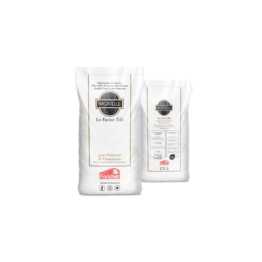 Produzida especialmente para “Viennoiserie”, a farinha T45 é perfeitamente calibrada e adaptada a produtos como croissants, brioches, panettone, graças à qualidade de suas proteínas extraídas do coração do grão. Farinha elaborada a partir de trigos certificados, especificamente adaptada a fabricação de massas folhadas e massas “leves”.